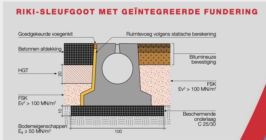 Prefab constructief gewapend elementen uit C115 beton met lengte 4000mm voorzien van fundament en 1 inspectierooster. Hiermee snelle inbouw en totale controle op de afdichting tussen de elementen door het inspectierooster. Samen met Hans Rinninger u. Sohn GmbH & Co. KG de AS SIBK 6700 inspectie bodem beschermde voorzieningen en AS SIBK 6701 Visuele inspectie vloeistof dichtheid nakomen.
